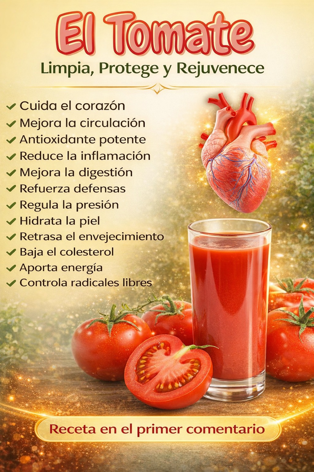 El jugo de tomate con limón es una combinación simple pero poderosa que reúne lo mejor de dos alimentos altamente nutritivos y medicinales. Por un lado, el tomate aporta una amplia gama de vitaminas, minerales y antioxidantes, mientras que el limón ofrece un alto contenido de vitamina C, flavonoides y propiedades depurativas. Al unirse, crean una bebida natural que no solo es refrescante y sabrosa, sino que puede convertirse en una herramienta eficaz para mejorar el bienestar general.